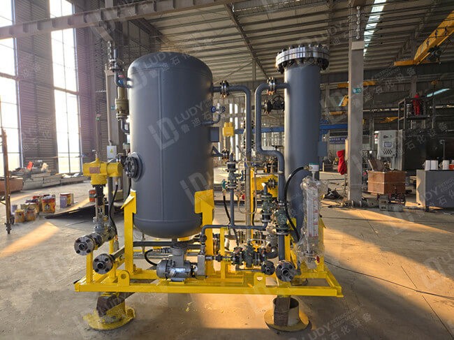 近期,江苏鲁迪石化设备有限公司完成了一套天然气精细过滤分离撬装设备的设计、制造与整撬集成工作。该设备已在工厂内完成整体装配、管路连接及出厂前检查,具备现场快速安装和投用条件,主要用于天然气进入下游系统前的精细过滤与杂质去除。